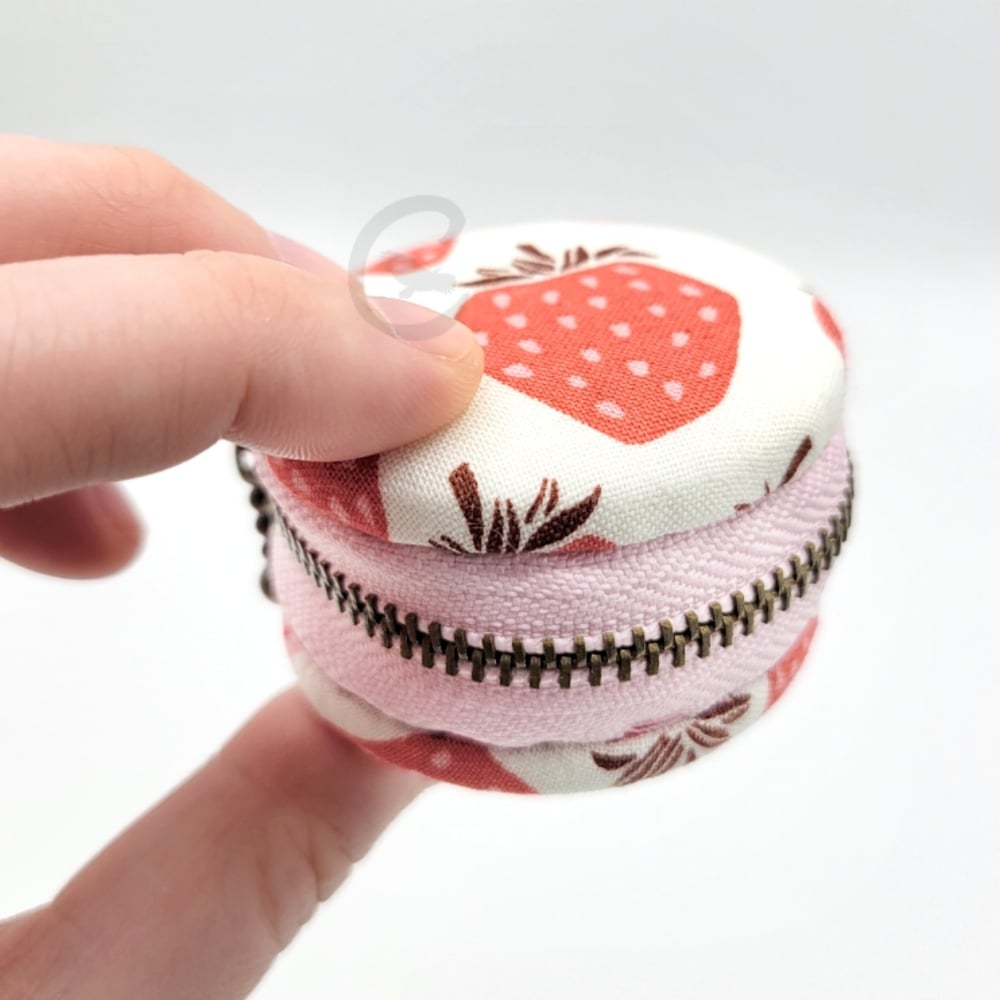 These little tiny items are just the cutest things in my shop! Each one is a mini zipper container, meaning it can open up and you can put very small items inside, such as earrings or other petite jewelry, a few coins, clips for sewing, etc. They are meant to resemble the dessert item Macarons, which are like little sandwiches with filling in the middle, and they fit in the palm of your hand.