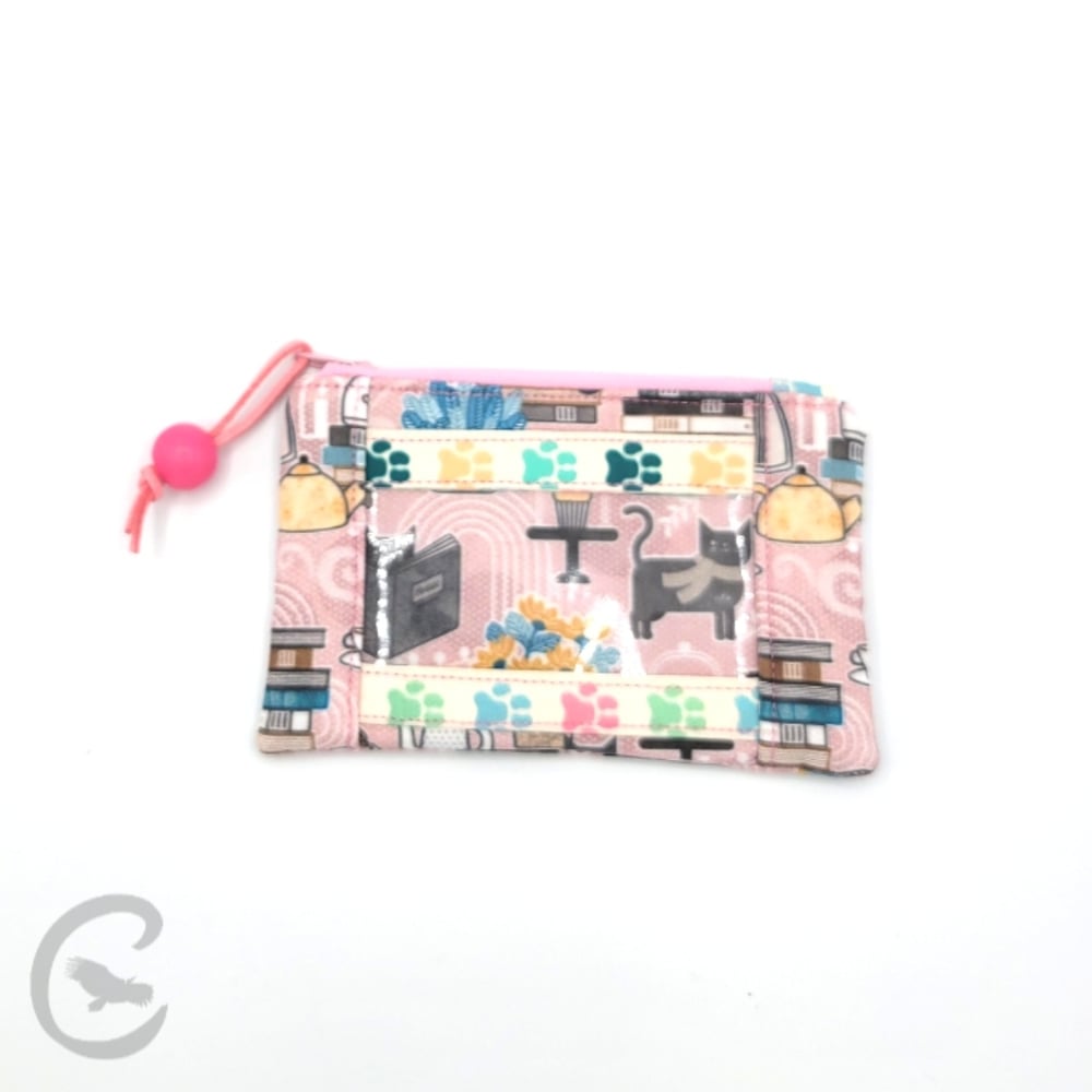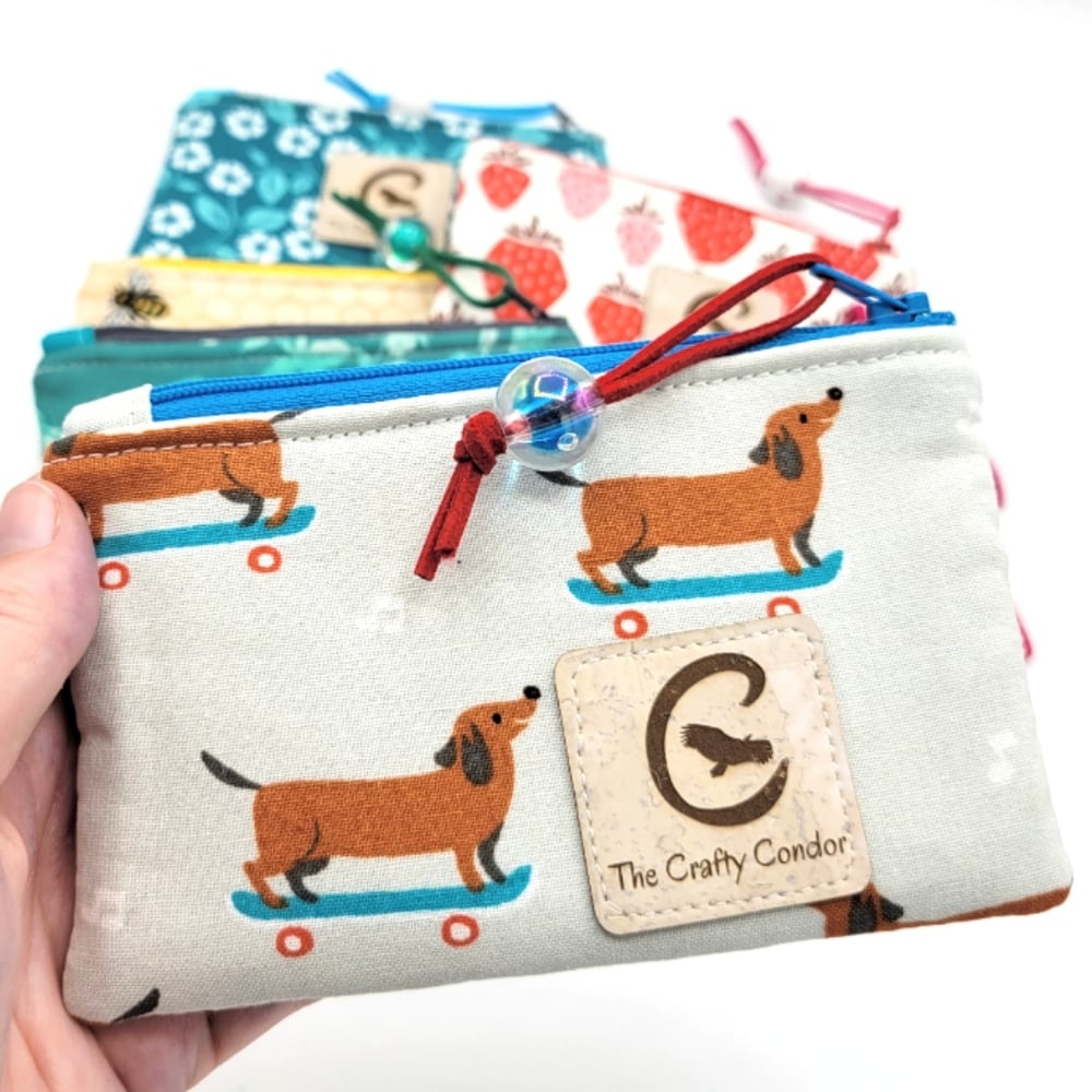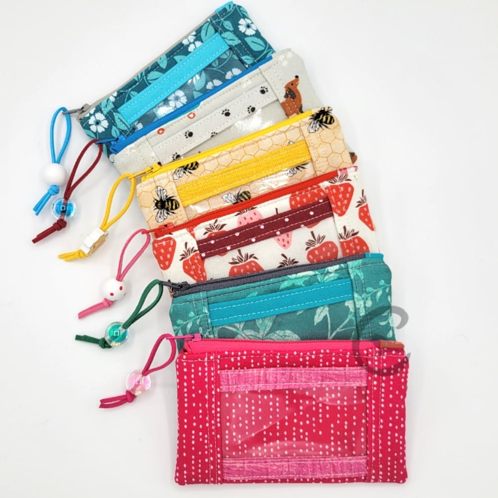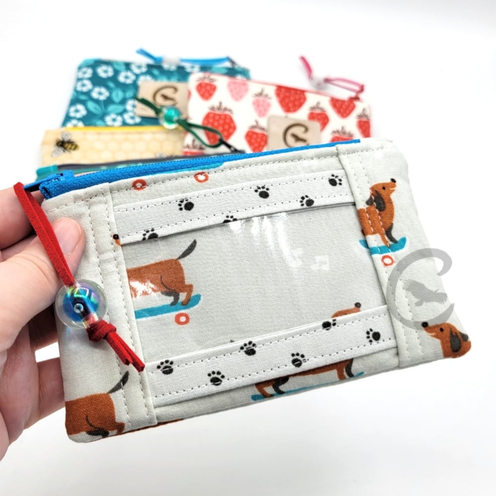 This is a small wallet for on-the-go convenience, as it features a simple zipper pocket for cards and cash, plus a clear vinyl ID pocket on the front for when you just need to keep it handy. The measurements are 4 inches wide and 3 inches tall.